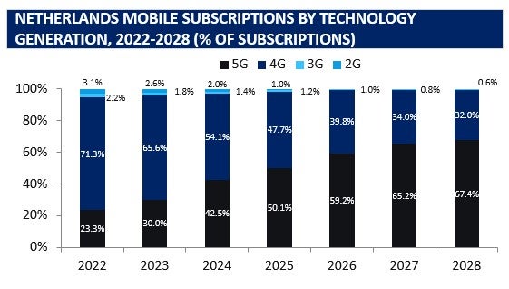 The main Netherlands mobile network operators are continuously investing in 5G network expansion to drive the uptake of 5G subscriptions.