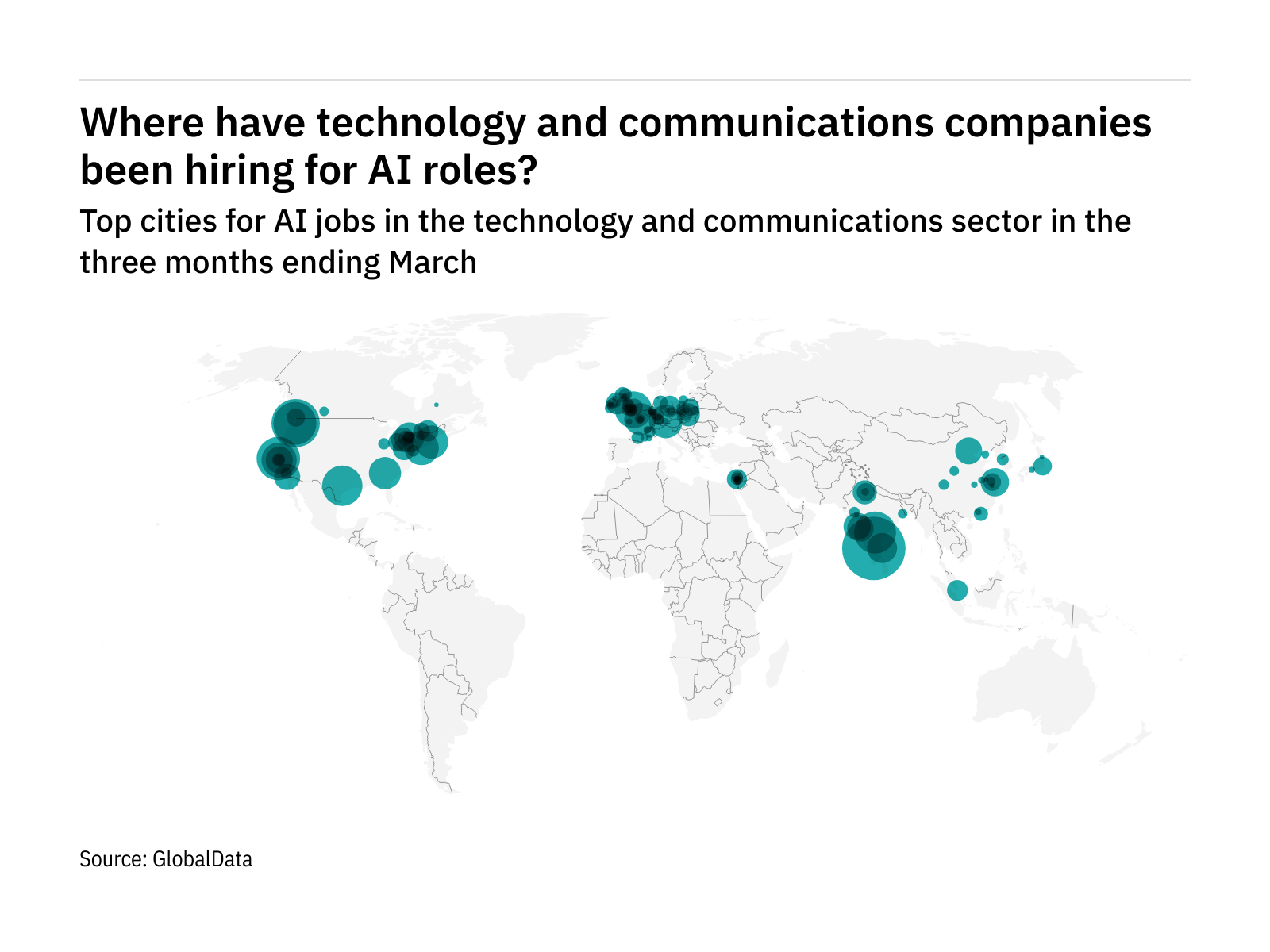 Some 5.2% of all tech industry AI roles were advertised in Bengaluru (India) in the three months ending March.
