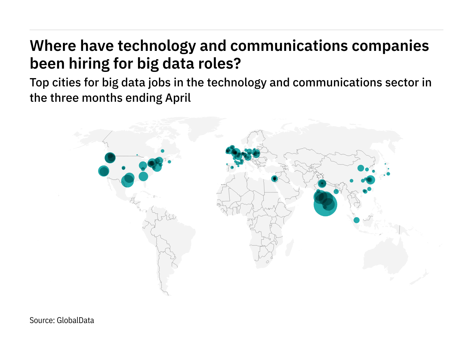 Some 7.7% of all tech industry big data roles were advertised in Bengaluru (India) in the three months ending April.