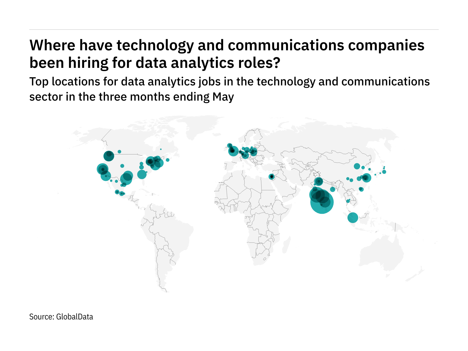 Some 7.3% of all tech industry data analytics roles were advertised in Bengaluru (India) in the three months ending May.