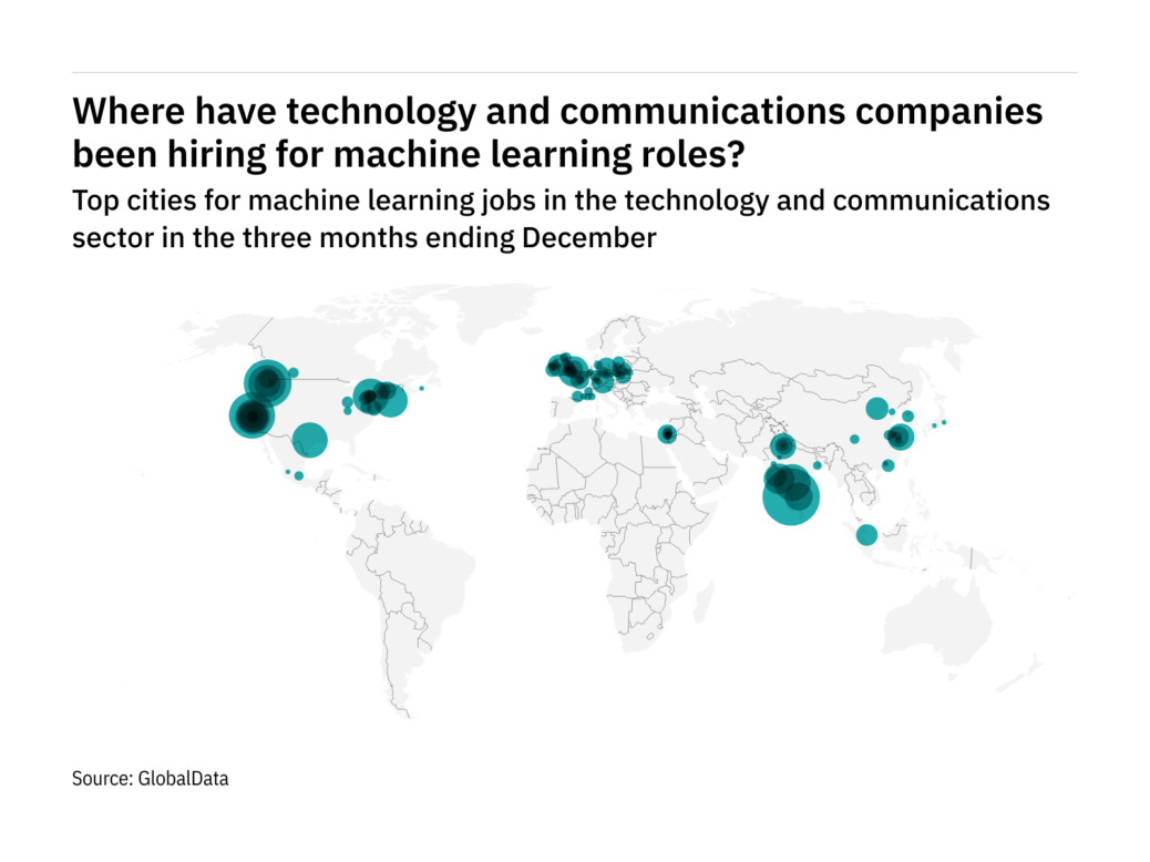 Some 5.3 per cent of all tech industry machine learning roles were advertised in Bengaluru (India) in the three months ending December – more than any other city.