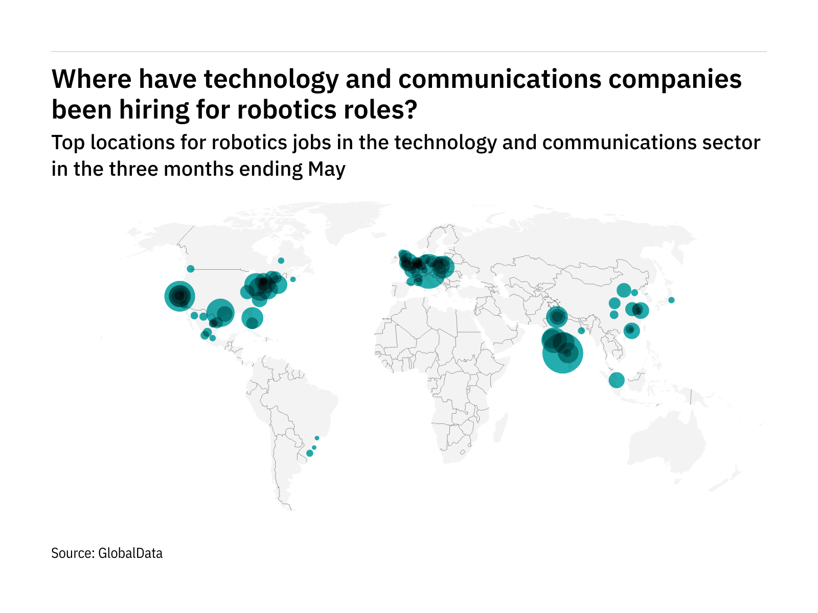 Some 4.6% of all tech industry robotics roles were advertised in Bengaluru (India) in the three months ending May.