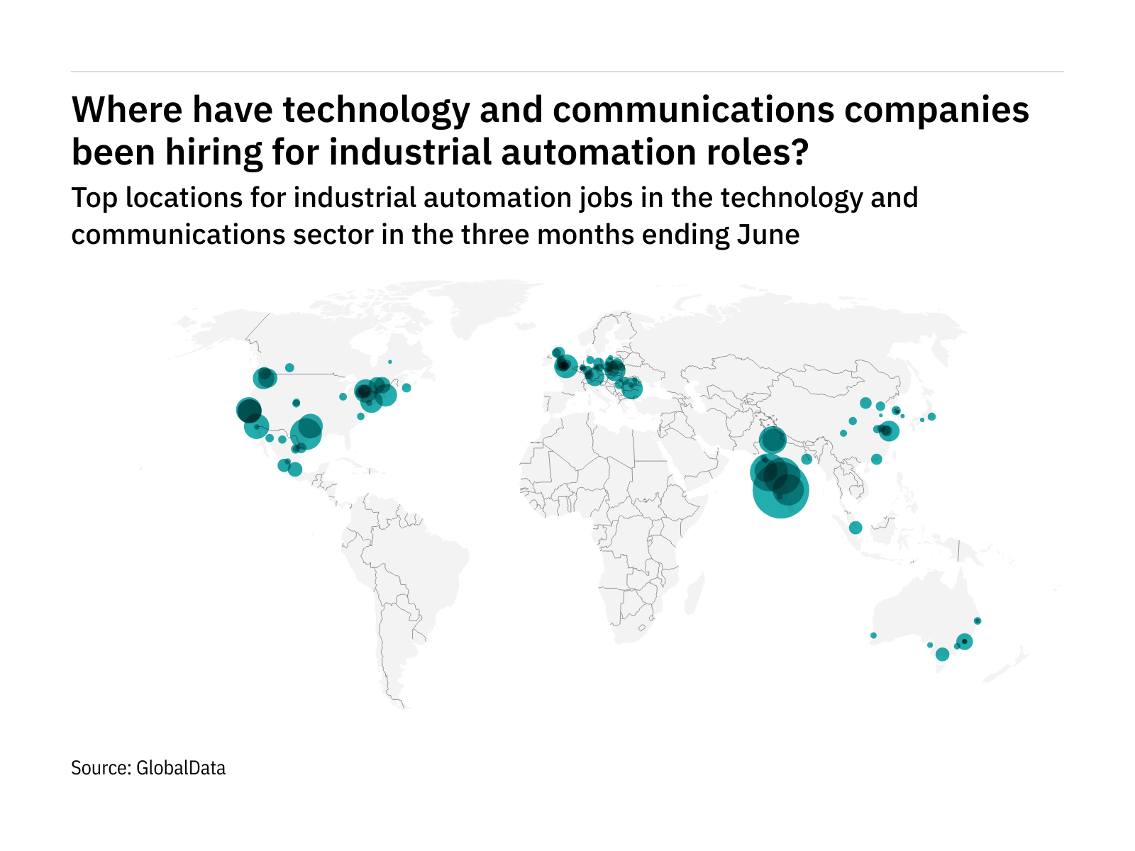 Some 6.8% of all tech industry industrial automation roles were advertised in Bengaluru (India) in the three months ending June.