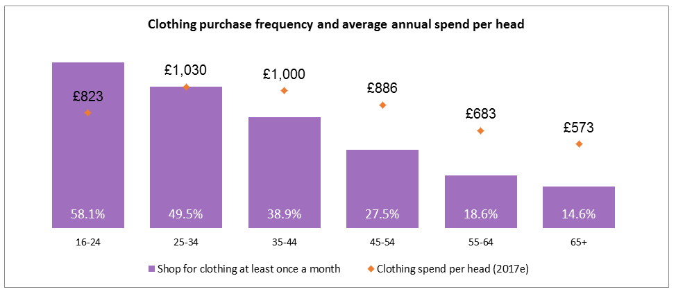 Regular spending among young shoppers is encouraged by the faster turnover of fashion ranges and more accessible choice, especially online, helping to drive up annual clothing spend – which in 2017 is forecast at £140 higher than that of 55-64s, and £250 higher than the over 65s.