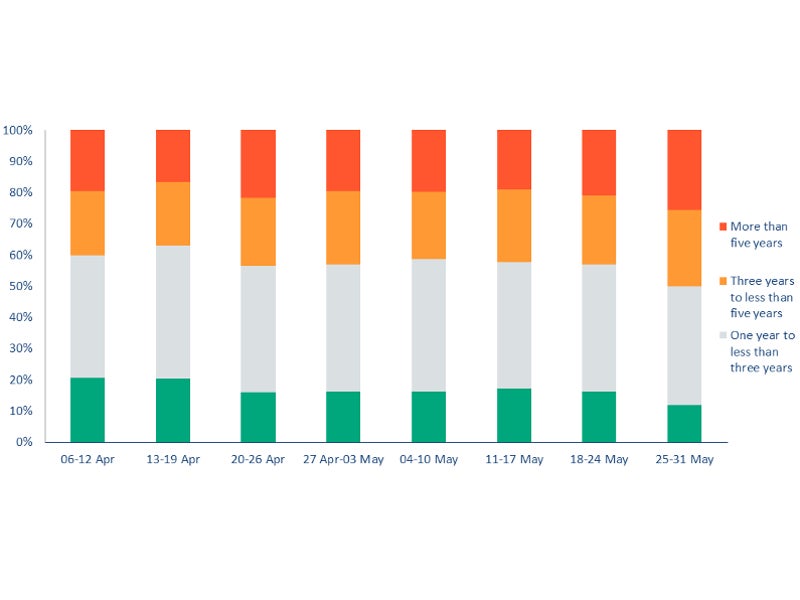 Similarly, the percentage of respondents who voted that the recovery would take more than five years reached a high of 25.5% in the last week of May, compared to a low of 16.7% between 13 April and 19 April.