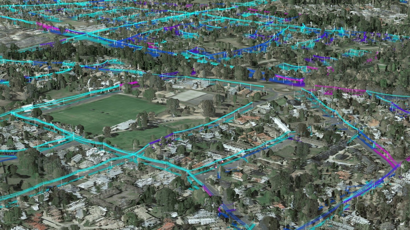 At Neara, our digital twin models are created using AI and digital modelling technology. They combine and analyse multiple high-fidelity data sources – including LiDAR [light detection and ranging], satellite and geospatial data – to map the precise location of a network’s assets and surrounding environment.