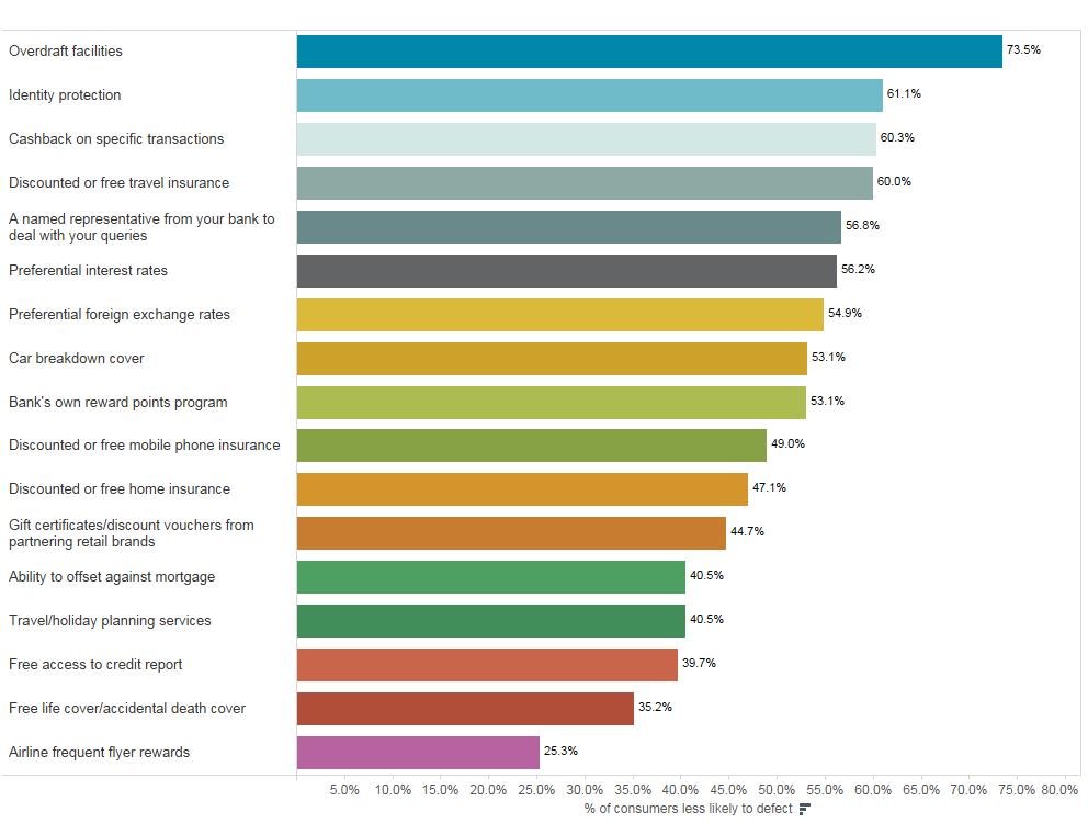 This chart, using data from a recent GlobalData survey, shows the stickiest current account features — the features on customer’s accounts who are less likely to switch to another bank.
