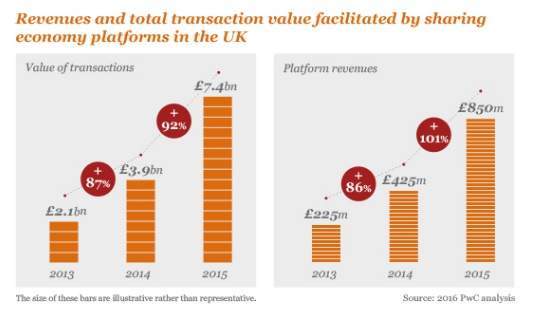 PwC expects the sharing economy is going to experience growth at around 60 percent, equivalent to an increase of £8bn over the year.