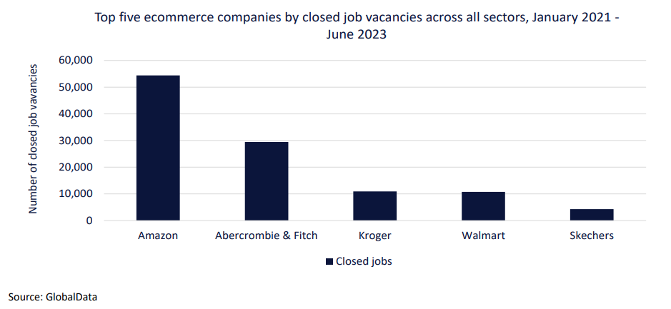 In its 2023, research company GlobalData’s thematic intelligence report on e-commerce found that Amazon was the biggest hirer in the sector between 2021 and 2023, closing over 50,000 job postings.