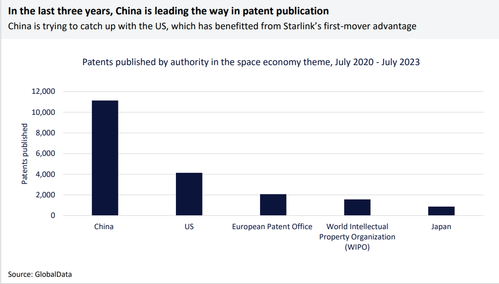 Data from research firm GlobalData’s Thematic Space Economy Report shows that China is supercharging its patent effort to catch up with the capabilities of private US companies like Starlink.