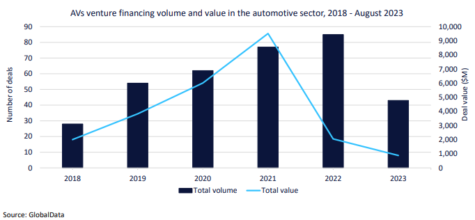 After experiencing a boost in financing between 2020 and 2021, AV venture financing has declined according to GlobalData’s 2023 thematic intelligence report into the technology.