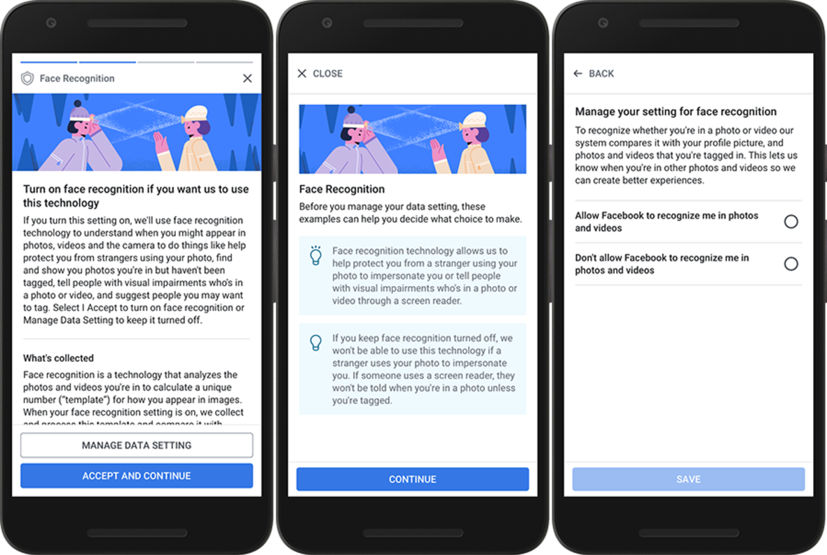 However, Facebook users will be given the option to either ‘accept and continue’ or ‘manage data setting’ — they won’t be able to instantly decline the software.