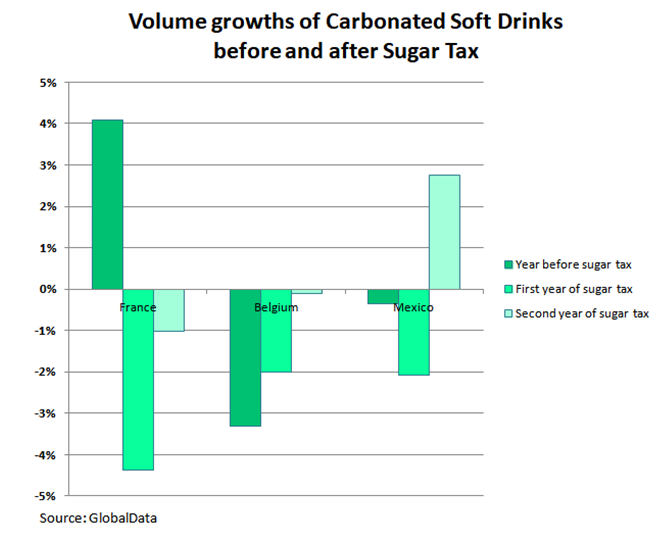 At an added cost of approximately five pence per litre, the levy triggered a 2% decline in consumption after 12 months. For a country which loves its sodas, that came as quite a shock.