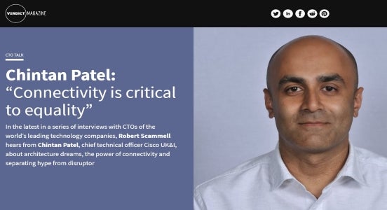 In the latest in a series of interviews with CTOs of the world’s leading technology companies, Robert Scammell hears from Chintan Patel, chief technical officer Cisco UK&I, about architecture dreams, the power of connectivity and separating hype from disruptor.