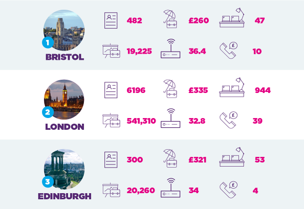 The study considered the number of co-working spaces in each area, average business insurance costs, broadband speeds and the number of startups in each city.