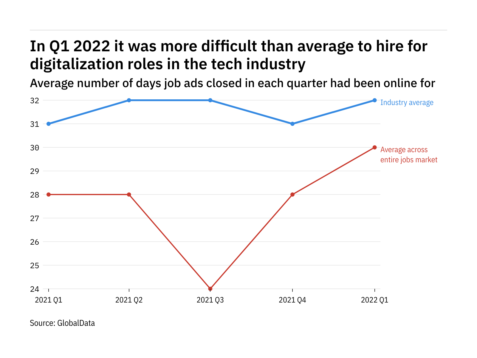 Digitalization related jobs that were closed during Q1 2022 had been online for an average of 32 days when they were taken offline.