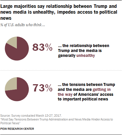 Eighty-three percent of Americans believe the relationship between Trump and the media is unhealthy, according to a Pew Research Center survey published earlier this month.