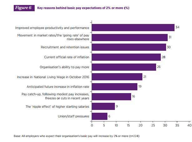 The recent rise in inflation is attributed for the reason employers have improved pay. As well as this, productivity improvements and the national living wage has contributed to the basic pay awards of some employers.