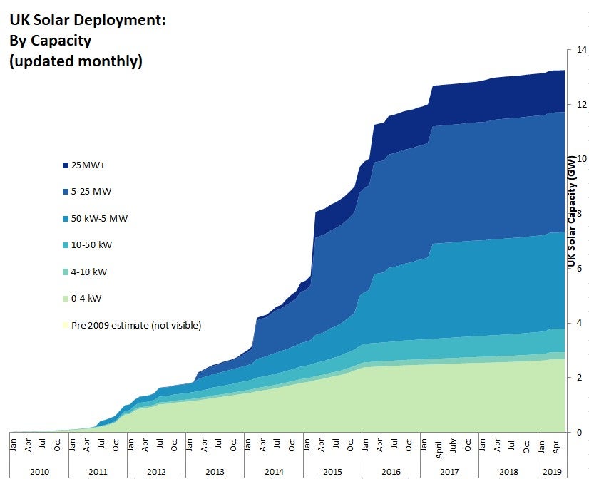 As of the end of June 2019, the installed UK solar capacity now totals 13,259.5MW, up 236.3MW since June 2018.