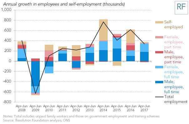 “The contribution of the self employed to overall employment figures has fallen quite a lot. The optimistic story is that as the economy has improved and the labour market has continued to tighten, firms are moving people onto more permanent contracts.
