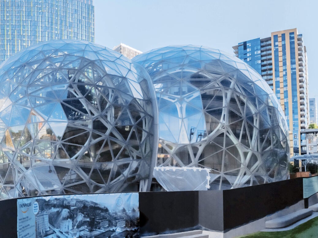 The buildings are the product of Amazon’s collaboration with architecture firm NBBJ, who based the design on the benefits of nature on the psyche, describing the Spheres as:
