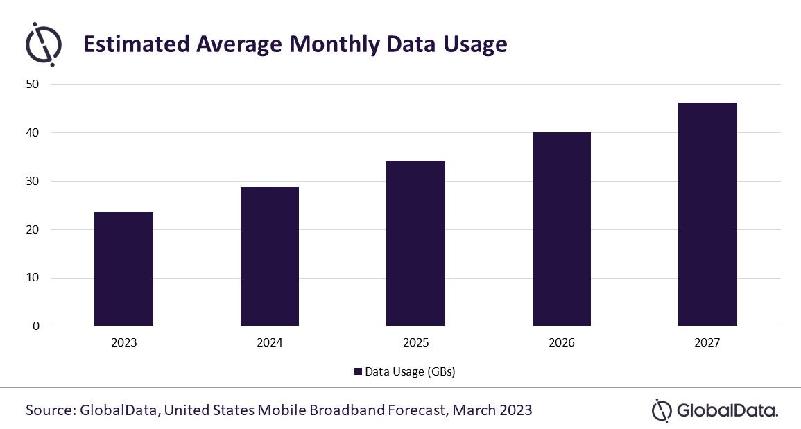 As shown in the diagram above: GlobalData research estimates that the average monthly mobile data usage for a subscription in the US will increase from 23.6 gigabytes (GBs) in 2023 to 46.3 GBs in 2027.