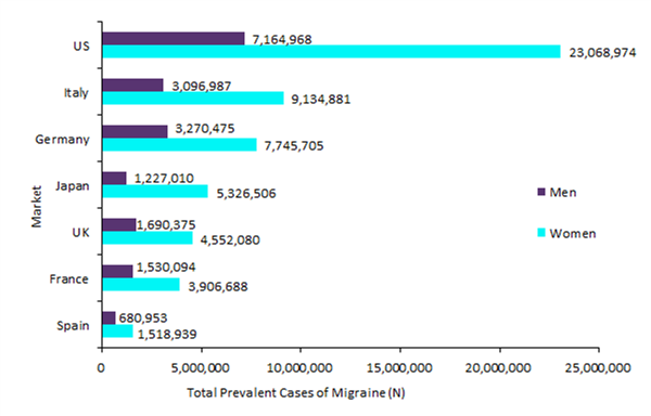 In 2016, women made up 74.75 percent of total prevalent migraine cases in the seven countries, with 55.2m women getting migraines.